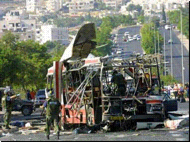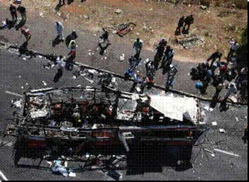 explosión – el humo – los pedazos del autobús – partes de cuerpos